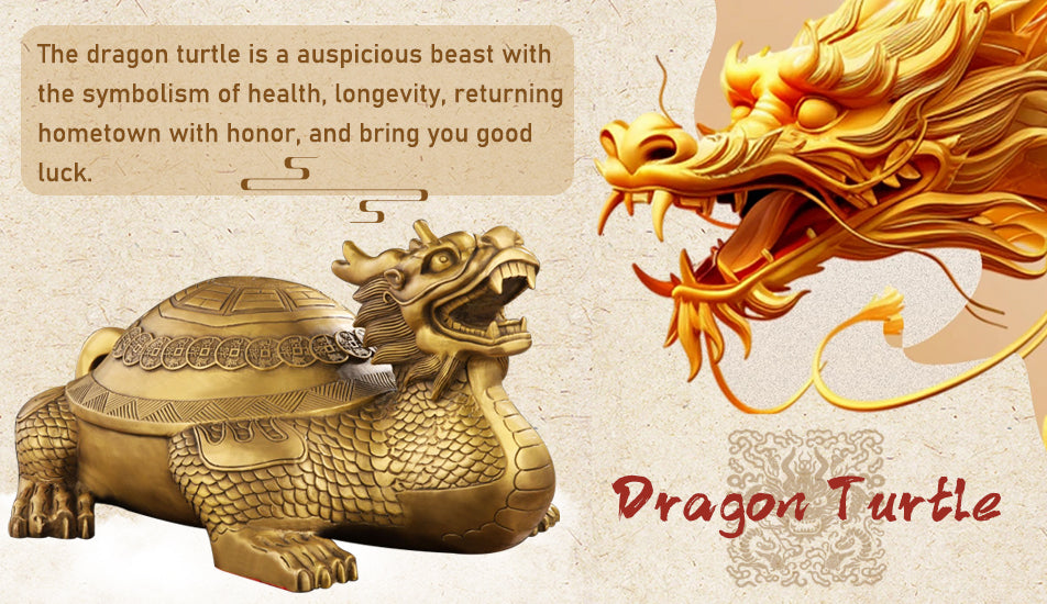 The dragon turtle is an auspicious beast in ancient China. It is the symbol of health as well as longevity, and can always return hometown with honor and bring good luck.