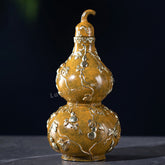 ● Information: 1. This gourd ornament is made from selected high-quality copper materials through various processes, many of which are considered as intangible cultural heritage techniques. 2. The gourd is one of the oldest mascots of the Chinese nation, and its homonym in Chinese language is "Fu Lu", which means good fortune. In Chinese mythological stories, the old immortals are always equipped with a gourd, and thus it is also a symbol of longevity. 3. This ornament is engraved with many gourd fruits, symbolizing endless blessings.