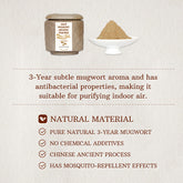 Feel the herbal and deep aroma of our Old Mugwort Incense Powder . Made with 3-year-old Qichun mugwort and plant-based binding powder. No artificial chemicals, colors, or harmful substances. The incense powder can be used to create incense seals, cone incense, or for electric burner heating. It can also be manually crafted into stick incense.