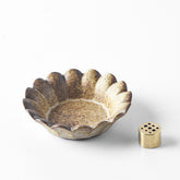 Design: Shaped with the outline of petals, the edges are wavy, and the mottled texture on the surface is natural and simple; the matching golden porous incense holder can firmly insert the incense stick.