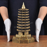● Information: 1. This Wen Chang Pagoda ornament is made from selected brass, which is meticulously carved by hand with traditional craftsmanship and is an exquisite artwork. 2. Wen Chang Pagoda is a feng shui mascot in traditional Chinese culture. This Wen Chang Pagoda ornament has 9 storeys, which symbolizes getting promoted step by step. Placing it at home is beneficial for both study and career. 3. The spire of the Wen Chang Pagoda is a gourd, which is considered as one of the oldest mascots of the Chinese nation. Its homonym in Chinese language is "Fu Lu", which means good fortune. Besides, it also symbolizes wealth, health as well as longevity.