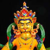 ● Information: 1. This Yellow Jambhala Buddha ornament is made from selected brass, with hand-painted face, smooth and natural lines, which is lifelike and solemn. 2. Yellow Jambhala is a God of Wealth in Buddhism. His right hand is holding Mani beads, while the left is holding a rat that is spitting out jewelry. He is sitting on a lotus throne with his right foot lightly stepping on conch, symbolizing endless wealth and prosperity. 3. This ornament has a bright color, and placing it at home not only enhances personal financial luck, but also improves the elegant atmosphere at home and showcases the owner's taste.