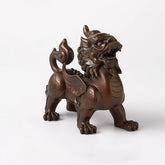 This pair of bronze Pixiu figurines is masterfully crafted from solid bronze, featuring a rich, deep tone with a refined antique finish. Each Pixiu has a strong, graceful body with dynamic curling manes and a fierce yet majestic expression. The surface is adorned with delicate cloud and scroll motifs, while the flame-shaped tails and wing-like details highlight exceptional craftsmanship. The mirrored pair radiates elegance and balance, blending the Pixiu’s traditional aura of strength with the warm, noble sheen of bronze. Perfect for display on a living room console, study shelf, or office tea table, this piece embodies both artistry and auspicious symbolism.