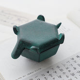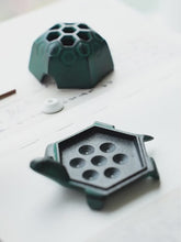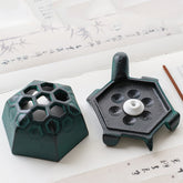 Design: Based on the prototype of a turtle, the turtle back is arched, the tortoise shell is uneven and has a hollow smoke outlet, which corresponds to the internal circular groove; the furnace cover is separated from the furnace body and comes with a white ceramic incense plug (the diameter of the plug hole is about 3 mm); the whole uses a lot of hexagonal elements, which is full of auspicious meanings.