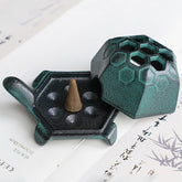 This is a Japanese incense burner in the shape of a turtle made of cast iron. In traditional culture, turtles symbolize health and longevity. This incense burner is both practical and beautiful. It can be used to burn incense sticks, tower incense, and spiral incense (with a diameter not exceeding 5.5cm). It is also an exquisite desktop ornament.