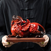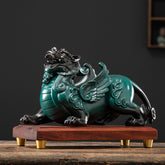 This exquisite pair of Pixiu figurines draws inspiration from the traditional auspicious beast in Chinese culture. Each piece is crafted from fine ceramic and finished with a smooth, glass-like glaze that enhances its elegant texture. Available in two classic colors, vivid crimson red and deep emerald green, each conveys a different energy: the red version radiates warmth and vitality, while the green one embodies calmness and stability.