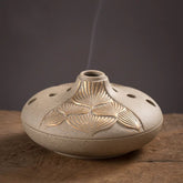 Design: Semi-handmade, the whole is disc-shaped, with raised shapes on it. The surface is hand-painted with gold lotus petal patterns, which are shiny. Reasonable design of multiple smoke outlets facilitates the dissemination of fragrance.