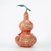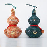 ● Information: 1. This gourd ornament is made from colored copper, with rich colors and is meticulously carved by hand with traditional craftsmanship. 2. The gourd is regarded as one of the oldest mascots in China, symbolizing good fortune, wealth, health as well as longevity. 3. This ornament is also carved with four divine beasts, which are Azura Dargon, White Tiger, Vermillion Bird, and Black Tortoise, symbolizing auspiciousness as a home decoration. 4. There is a red sandalwood round plaque hanging on the gourd, with "福" (auspiciousness in English) engraved on the front and "招财进宝" (wealth and fortune in English) engraved on the back.