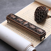 Information: The incense box adopts traditional handicrafts, finely hollowed out and carved lotus and fish patterns, neat and orderly, smooth and natural, full of charm, have the auspicious meaning of Having more than need every year.