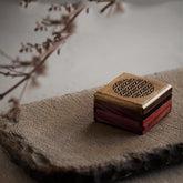 This wooden incense burner is a double-layer square shape, carefully crafted with natural wood, one layer for lighting incense and the other layer for storing incense. After multiple processes such as material selection, cutting, mortising, and polishing, it is meticulously and carefully preserved to preserve the natural original wood grain, showing elegance and generosity. The circular hollow carving on the lid is ingenious, which not only highlights the exquisite wood carving craftsmanship, but also adds artistry and refinement. Light the incense coil and place it in the box, and the smoke will slowly escape from the hollow. When you smell the fragrance, taste tea, and meditate, it can help you stay away from the hustle and bustle and enjoy the tranquility. Whether it is placed in the study or tea room, it can add a simple charm to the space. It is an ideal choice for those who pursue quality life.