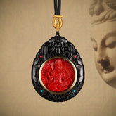 Ebony Wood Cinnabar Bodhisattva Buddha Statue Inlay Pendant