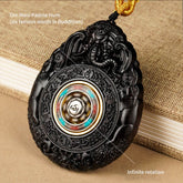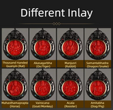 ● Information: 1. This pendant is mostly made from ebony wood, which not only has high hardness, but also has great luster. Ebony wood is often considered as a symbol of auspiciousness, power, and status. 2. There is a Buddha statue inlay, and each zodiac sign has its own guardian Buddha. You can find the right pattern based on your zodiac sign to be better protected from disasters and illnesses. 3. This pendant is double-sided carved with exquisite craftsmanship. The inlay is made from cinnabar whose color is red, which is considered as an auspicious color in traditional Chinese culture and can bring individuals good luck and happiness.