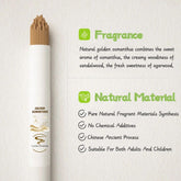 Feel the special and sweet osmanthus aroma of our Golden Osmanthus Sandalwood Incense Stick. Made with natural flowers, plants, and trees such as osmanthus, sandalwood, and agarwood, finely ground into powder and blended with nanmu wood powder. No artificial chemicals, colors, or harmful substances.