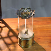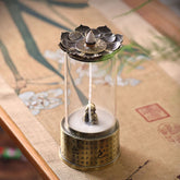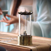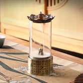 This dual-purpose incense burner features a base engraved with the Heart Sutra. The lotus-shaped top works with backflow incense, while the lower chamber can hold coil incense. Inside the clear glass cover stands a cute little Buddha figure. When the incense burns, the smoke curls around the Buddha—backflow incense forms soft clouds around the figure, while coil incense releases a gentle, steady fragrance. The design blends the Zen calm of the Heart Sutra with the charm of the small Buddha, making it a lovely piece for relaxation and mindful incense sessions.