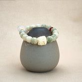 ● Information: 1. Bodhi bracelets play a significant role in Buddhist culture, as they not only ensure you safety, health, and happiness, but also symbolize wisdom and great insight. 2. This bracelet is paired with a pumpkin bead, a natural white agate ring, and an ivory nut dancing lion, symbolizing auspiciousness and good luck. 3. It is also a handmade product. Wearing it can improve personal temperament.