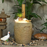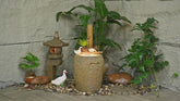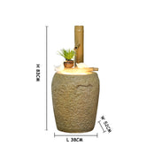 This Japanese-style bamboo-inspired water fountain recreates the calm beauty of a traditional garden with its resin-crafted stone texture and light brown bamboo spout. The main body features a natural stone-like finish that feels earthy and peaceful, while the small bamboo outlet guides the water smoothly into the basin below. The top area can be decorated with mini plants, adding a touch of greenery that enhances the quiet, Zen-like atmosphere.