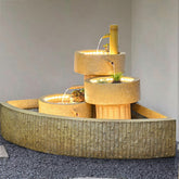 The fountain includes a built-in circulating water system and a bright halo-style light ring. Water flows down the textured platforms in smooth layers, and under the top spotlight, the stream appears clear and radiant. The waterwheel turns gently with the flow, adding movement and a peaceful rhythm to the space. Made from durable resin that holds color well and resists wear, this fountain is ideal for tea rooms, entryways, and balconies, perfect for creating a soothing Japanese ambiance while symbolizing flowing fortune and a smooth, harmonious life.
