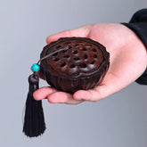 This wooden incense burner is carefully carved with the lotus pod as the prototype, with smooth and natural overall lines and full of simple charm. The detailed design of the furnace body and the furnace cover highly restores the shape of the lotus pod, and the holes in the furnace cover are just like the lotus seed holes of the lotus pod, which is convenient for the fragrance to drift. In traditional Chinese culture, the lotus pod has rich meanings. It represents many children and good fortune, and symbolizes the reproduction and continuation of life; at the same time, the lotus grows out of the mud without being stained, and the lotus pod is also given the beautiful meaning of purity and cleanliness. The incense burner is matched with turquoise and exquisite tassels, which adds a bit of elegance. Place it in the study or tea room, light the incense coil, and the curling green smoke escapes from the holes. In the faint fragrance, you can feel the depth of Chinese traditional culture and the quiet beauty of life. It is a good choice for people who understand life.