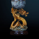 Design: The circling golden dragon is the main support, the dragon head is high, the dragon body scales are delicately carved, and the posture is vigorous. Above is the furnace body shaped like a mountain, with spikes on the edge. The overall shape is unique and full of tension.