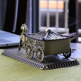 Information: The incense cone holder is designed based on a creative ancient chariot. The windows and wheels on both sides of the carriage are embossed with dragon patterns, which is quaint and unique.