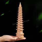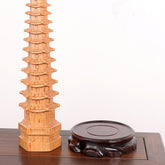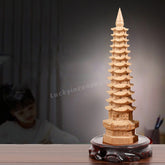 ● Information: 1. This Wen Chang Pagoda ornament is made from natural old peach wood which has a faint fragrance and clear texture, and is capable of warding off evil and guaranteeing your safety. It is known as divine wood in China. 2. Wen Chang Pagoda is a feng shui mascot in traditional Chinese culture, and different storeys of it often have different meanings. To be specific, 7-storey indicates academic progress while 9-storey symbolizes getting promoted step by step. Plus, 11-storey indicates family harmony, and 13-storey represents success and fame. Individuals can choose different storeys of the Wen Chang Pagoda ornament based on their needs. 3. This ornament is carefully carved, and the spire is like a brush tip, symbolizing soaring to great heights.
