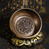3. This singing bowl is also carved with "Om Mani Padme Hum" (six famous words in Buddhism) in the center. These six words hold great significance in Buddhist philosophy because chanting this mantra can help purify the body and mind, and foster inner peace and harmony.