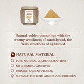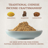 Feel the herbal and deep aroma of our Osmanthus Incense Powder. Made with natural osmanthus, ground at low temperatures, and blended with traditional incense-making methods using agarwood and sandalwood. No artificial chemicals, colors, or harmful substances. The incense powder can be used to create incense seals, cone incense, or for electric burner heating. It can also be manually crafted into stick incense.
