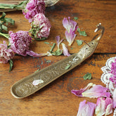 This brass incense holder is exquisite and elegant. The whole is carefully made of brass, exuding a noble metallic luster, with a heavy texture and durability. Its unique shape is like a lively peacock, with a lifelike head and a slender tail. Peacock has rich and beautiful meanings in Chinese culture, symbolizing good luck and good fortune, and can bring good luck to the user. The surface of the incense holder is decorated with exquisite embossed patterns, with smooth and delicate lines, showing exquisite craftsmanship.