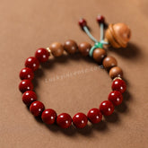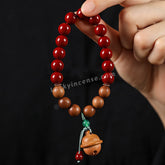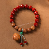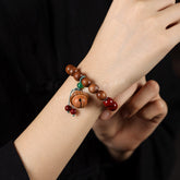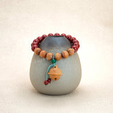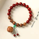 Purple Gold Cinnabar Sandalwood Beads Peach Wood Bell Bracelet