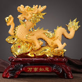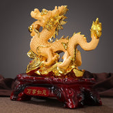 ● Information: 1. This dragon ornament is made of resin and is gold in color. The dragon is meticulously carved by hand with neat scales, clear head and tail lines, which is lifelike.