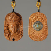 Sandalwood Buddhist Guanyin Holding Lotus Pendant