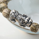 Blending the meditative energy of Bodhi seeds with the wealth-attracting symbolism of the silver Pixiu, this bracelet carries both peaceful and prosperous vibes. The smooth Bodhi texture pairs beautifully with the solid silver charm, making it ideal for mindful wear or everyday accessorizing. Whether worn for calm focus or as a charm of good fortune, it's a meaningful piece for both self-wear and gifting, perfect for those who value tranquility and prosperity.