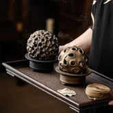Information: This incense is inspired by Taihu stone in China. Windproof design with cover. The bottom tripod is designed for smooth placement. Light a incense, have a cup of tea, and enjoy the peaceful moment.