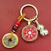 ● Information: 1. This keychain charm is in the shape of a coin and is made from brass. It is carefully carved with various Taoist magic symbols and incantations, symbolizing safety and auspiciousness.