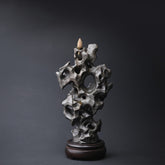 This is a waterfall backflow incense burner that imitates the shape of Taihu stone. After lighting the backflow incense, the smoke flows slowly along the stone cave, like clouds and mists lingering in the mountains, creating a tranquil and Zen atmosphere. Taihu stone has been considered to imply prosperity and wealth since ancient times, and it helps to create a balanced and harmonious energy field. This incense burner is not only an artistic ornament, but also a Feng Shui item that enhances the atmosphere of the space and helps career fortune. Suitable for business gifts, opening gifts or personal collections, adding a natural and Zen beauty to your space.