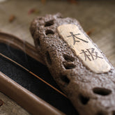 Information: The incense burner box is designed with the concept of Taiji, which is different from the traditional purple clay incense burner. This incense box is made with coarse sand and pays more attention to the display of rough texture, thus producing a grand and simple temperament.